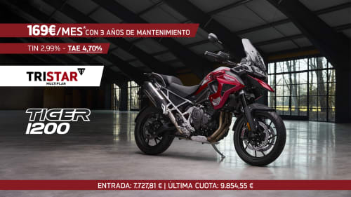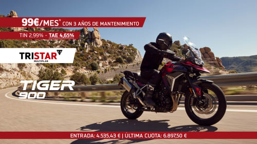 Tiger 900 GT, GT Pro, GT Pro A2 o Rally Pro… Todas con 3 años de mantenimiento GRATIS y las mejores condiciones (TIN: 2,99% - TAE: 4,65%) de Santander Consumer Finance al financiar con TRISTAR MULTIPLAN en 36 meses.